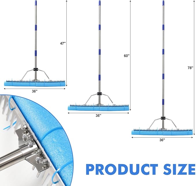 Landscape Rake, 78 Inch Adjustable Lightweight Pond Rake 36" Width Aluminum for Removing Weeds, Leaves, Beautifying Coastlines and Beaches