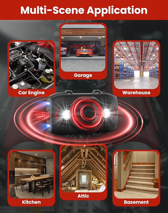 - 【Dual-Sonic & Multi-Light Defense】: Equipped with both variable and fixed-frequency ultrasonic waves, our rodent repellent for car engines emit disruptive sounds rodents can’t tolerate. Combined with two bright white and two intense blue strobe lights, it creates an unfriendly audio-visual environment that effectively scares away rats, mice, squirrels, and other small pests.