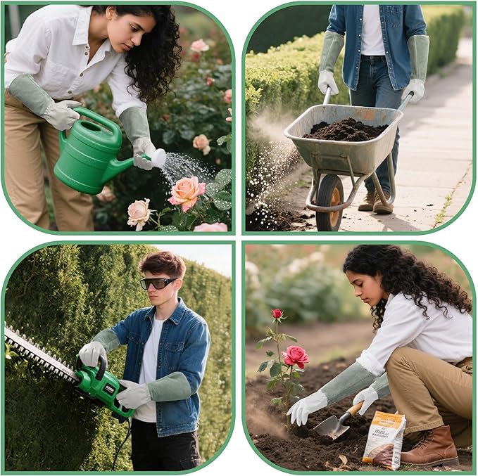- Unisex Design & Great Gift:With a classic leather look and practical features, these gloves are designed to comfortably fit both men and women. They make an excellent gift for garden enthusiasts, hobbyists, or professionals. Perfect for use in home gardens, greenhouses, farms, or outdoor workshops—anyone who spends time caring for plants or working outdoors will appreciate their durability and comfort.
