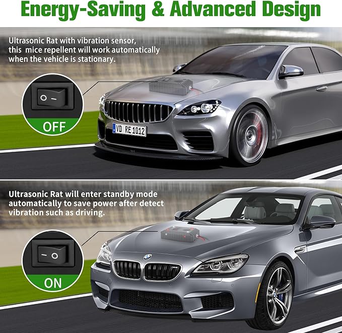 - Reliable And Effective Protection Of Vehicles: When the ultrasonic rat repeller is in car mode, mouse Repellent for car engines can disrupt the nervous system of rodents by using variable frequency ultrasonic waves, 4 LED strobe lights, and a siren, causing them to become restless and eventually leave your car. Prevent rodents get inside your car to car bite the power out or make a nest. Repel rodents with rat repeller, effective and non-toxic, and protect the health of your family