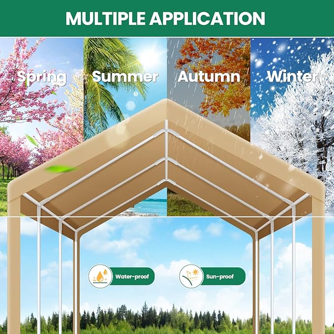 - 【Built to Last】 Made from upgraded PE material, the car canopy is waterproof, UV-resistant, and tear-resistant, providing long-lasting durability and excellent protection. Secured with ground nails and wind ropes, it withstands seasonal elements effectively.