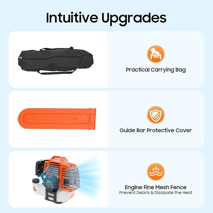- Easy to Assemble& Start: A full range of accessories and simple construction allow you to install and use it quickly. It adopts a professionally optimized starting mechanism, pulling the handle can be a light and effortless quick start. A powerful magnetic ignition mechanism ensures easy starting and smooth operation.