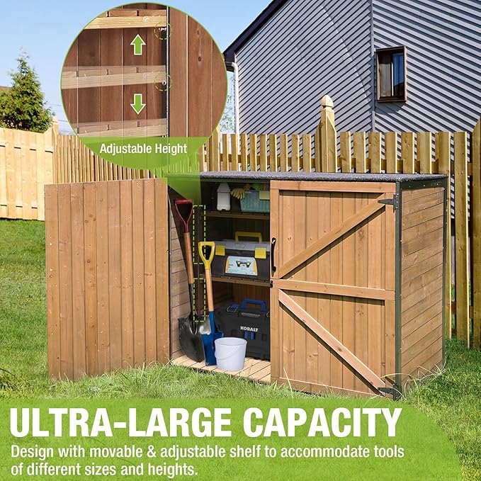 - 【Dress Up Your Backyard】This outdoor storage shed provides an extra storage space to Sort out the Cluttered tools, Keep your yard looking clean and tidy.The side perfect for outdoor garden backyard, patio, utility room.