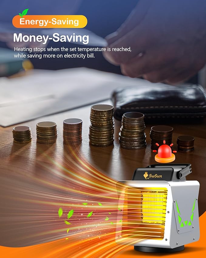- Triple Safety Protection - Peace of Mind: Equipped with overheat protection, tip-over shut-off, and smart temperature control, this electric outdoor heater for greenhouse ensures maximum safety for both you and your plants. If internal temperature exceeds 149°F (65°C), it automatically shuts off. Also, it powers off when tipped over—ideal for indoor garden heaters, winter greenhouse use, and home plant tents.
