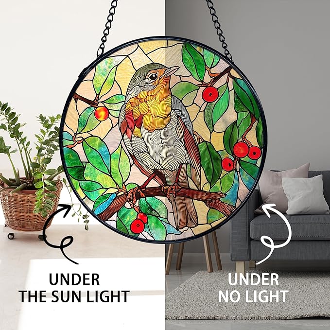 - Seasonal & Festive Decoration: This stained glass decor suits year-round use and shines especially during the festive months. Whether hung in the window to catch the autumn sunlight or adding warmth during Thanksgiving, Halloween, or the Christmas season, it brings a cozy, colorful atmosphere to your home.