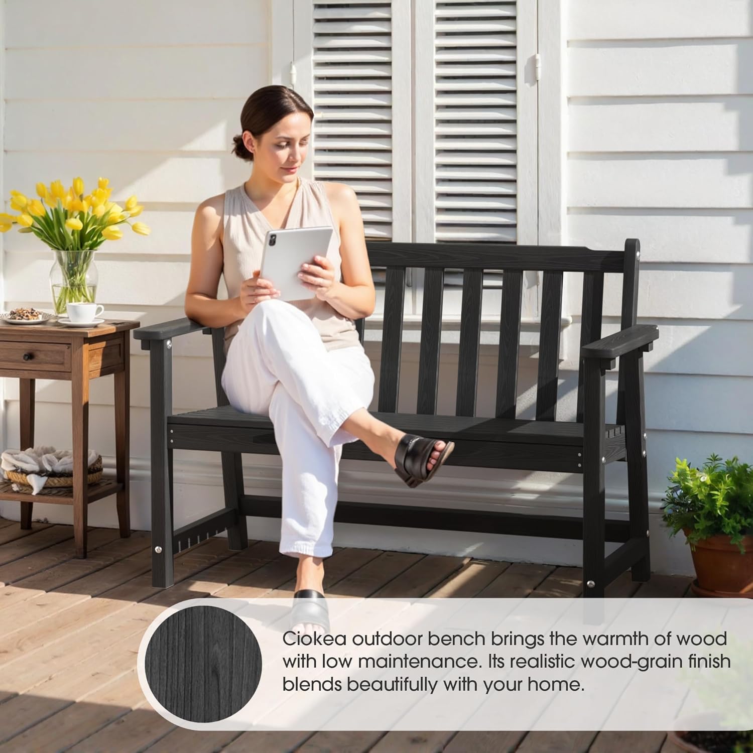 - 【All-Weather HDPE】: Ciokea outdoor bench is constructed from high-density polyethylene (HDPE), ensuring it withstands rain, UV rays, and temperature changes without cracking or rusting