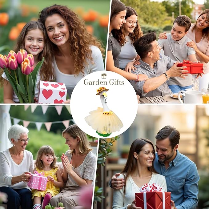 - 【Creative Festive Gifts】Tutu collar outfits and hat are all adjustable, reusable and durable. Featuring bright and cheerful sunflower elements, friendly large porch goose throughout the year creates a playful scene that stands out, making it a delightful addition to celebrate Birthday, Wedding, Anniversary, Christmas, Halloween, Thanksgiving, Housewarming, Mother’s Day and more. Yard goose statue is also an excellent gift for friends, family members, neighbors, relatives and garden lovers.