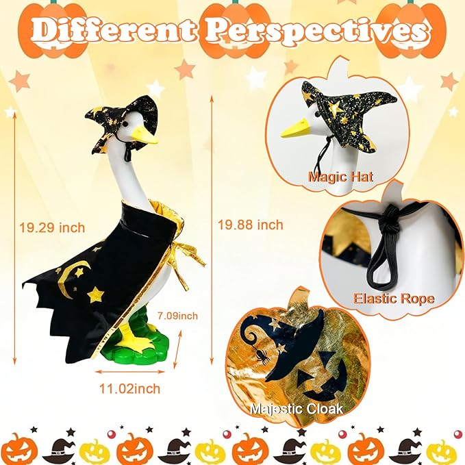 - 【Creative Festive Gifts】The porch geese outfits are all adjustable, reusable and durable. Featuring ghost and cheerful magic elements, friendly large porch goose throughout the year to create a playful scene that stands out, making it a delightful addition to celebrate Birthday, Halloween, Anniversary, Christmas, Autumn, Thanksgiving, Housewarming, Mother’s Day and more. Yard goose statue is also an excellent gift for friends, family members, neighbors, relatives and garden lovers.