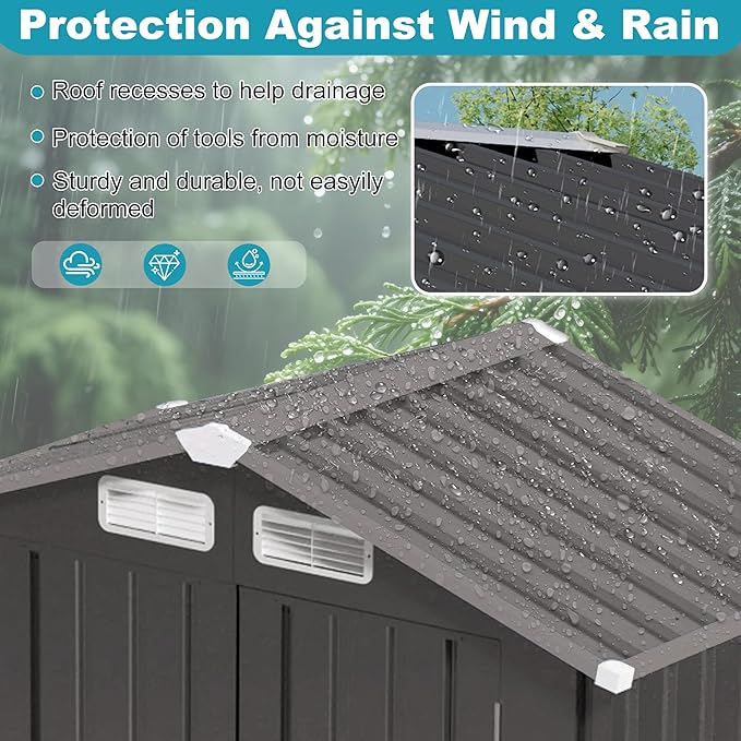 - Durable Galvanized Steel, Built to Last: Constructed from prepainted galvanized steel with multiple anti-rust treatments. Designed with a waterproof roof and wind-resistant frame, it offers superior strength and weather resistance—far more durable than wood or plastic alternatives.
