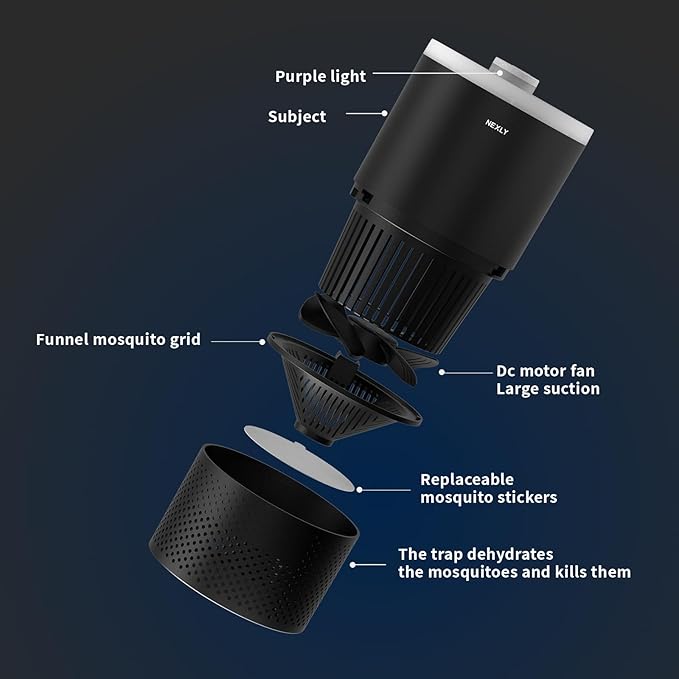 - Ultra-Efficient Mosquito Elimination:Our bug zapper features 360° insect attraction technology with UVA 365-395nm wavelength light to effectively target fruit flies, mosquitoes, and household pests,protects you and your family from pests. Fly trap indoor operates at quieter than a desk fan.
