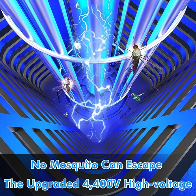- [Effective Attraction & Shock] With the 420nm light wavelength, our mosquito zapper lures in a diverse range of mosquitoes. Rigorous testing confirms its effectiveness against 3600 mosquito species, including gnats, fruit flies, moths, wasps, and house flies. Its 4200V grid delivers a lethal shock, leaving no mosquito untouched. Easy disposal with the included tray. The long-wave light poses no threat to humans or pets, providing a secure and mosquito-free environment.