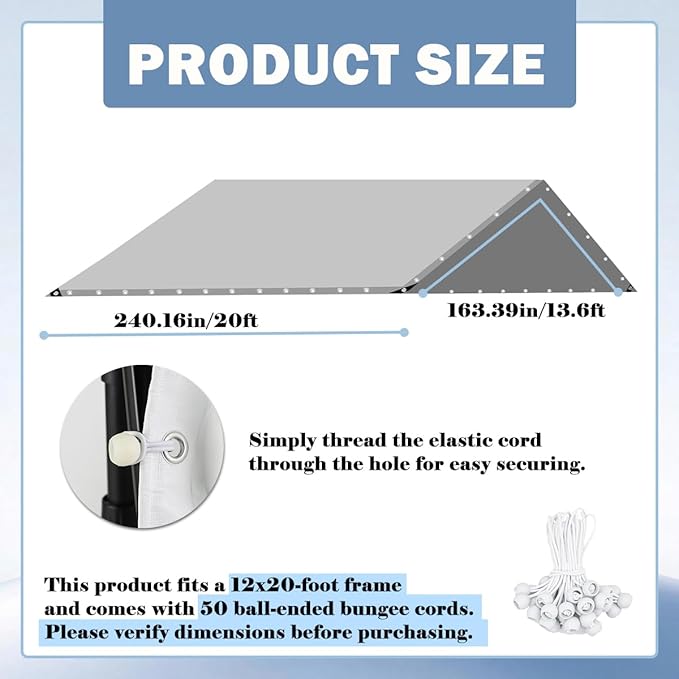 - Broad Compatibility: This car canopy replacement cover is engineered to fit most 12x20 ft frames seamlessly, enhanced with 50 ball bungees for a secure fit; cross-check dimensions before purchase, as it includes only the top cover and excludes the frame, ensuring perfect compatibility for your car canopy setup.