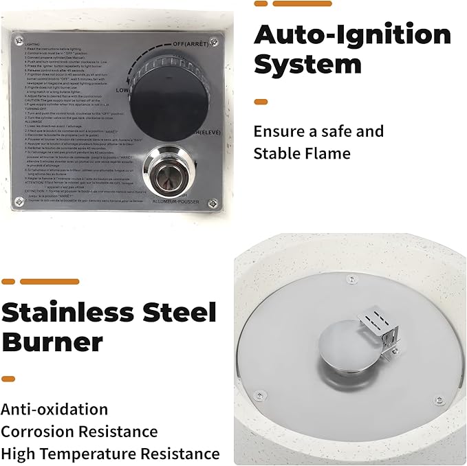 - 【Premium MgO Material with Terrazzo-Like Finish】Crafted from Magnesium Oxide (MgO), this cylinder propane fire pit table features a Terrazzo-like speckled surface, combining durability, waterproof performance, and lightweight construction. Perfect for outdoor use, it adds a modern, artistic flair while remaining a reliable propane fire pit table for patios, decks, gardens, and backyards