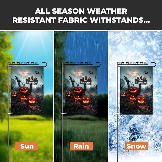 - Reusable Halloween Decoration – This graveyard Halloween garden flag is built to last through multiple seasons, adding spooky fun to your lawn, garden, or porch year after year.