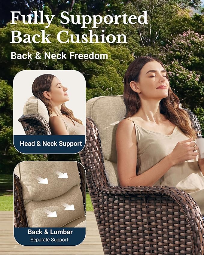HILLGA Luxury Patio Furniture Set with 6-Inch Thick Cushions, High Back Outdoor Swivel Rocker Chairs and Table, 3-Piece All Weather Conversation Set for Porch Deck Balcony Yard, Beige (V3)