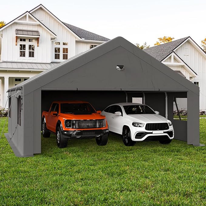 - Large Capacity Carport - The size of this car port is 20'L x 20'W x 12.14'H, which provides ample room for you to park car or other vehicles, even you can use it as a temporary warehouse