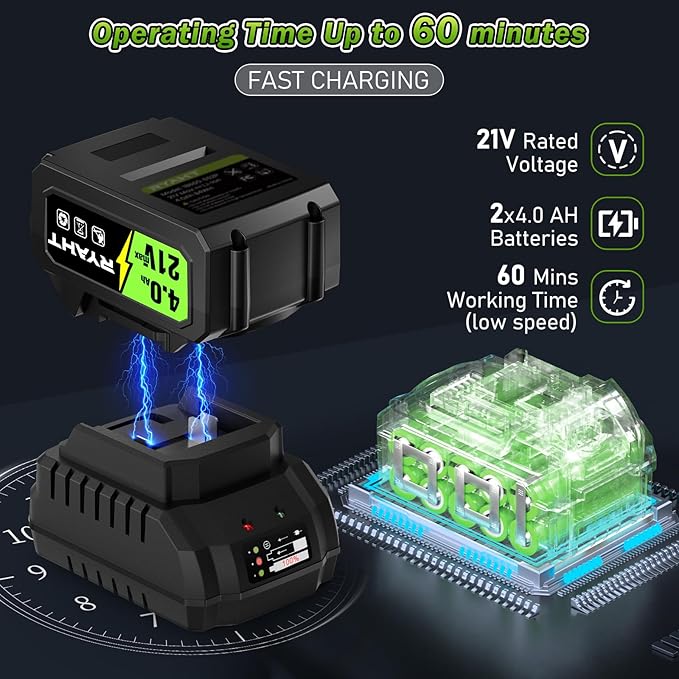 RYAHT Leaf Blower Cordless, 21V Powerful Electric Leaf Blower with 2 X 4.0Ah Batteries and Charger, 2 Speed Modes, Handheld Lightweight Leaf Blowers for Lawn Care, Patio, Dust, Blowing Leaves- Green