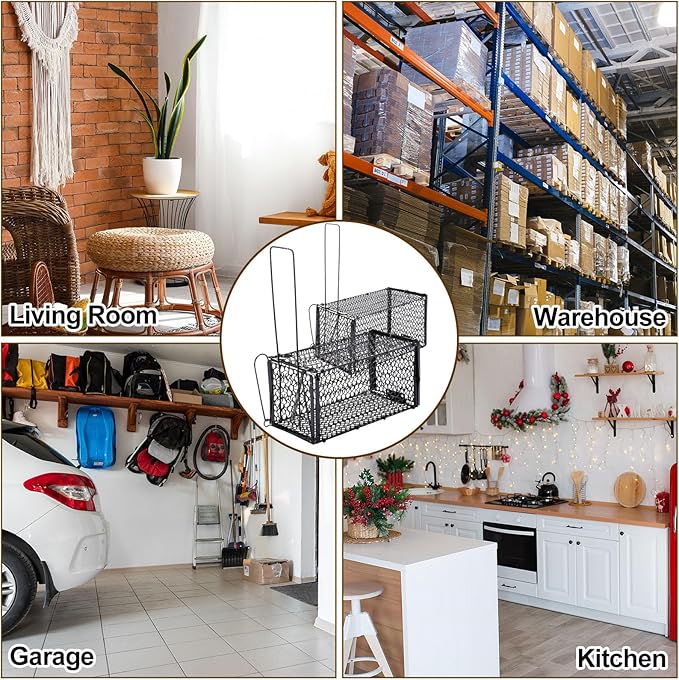 - Catch and Release: this live traps for squirrels is suitable for indoors, outdoors, kitchens, warehouses, garages, courtyards, gardens and terraces; The humanized design will not cause accidental injury, After catching small animals or rodents, you can release them at any time; This mousetraps indoor for home that works is not a disposable product, it can be reapplied both indoors and outdoors