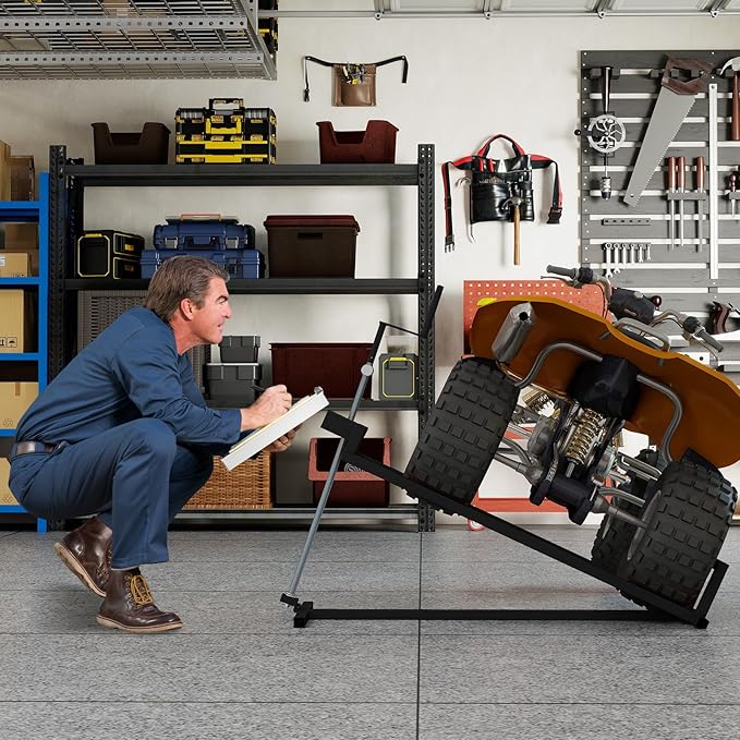 - 【Foldable Design & No Assembly】Easily collapsible, the riding mower lift minimizes space usage when not in action, freeing up valuable space in your garage. Furthermore, with no assembly needed, it's available for instant use.