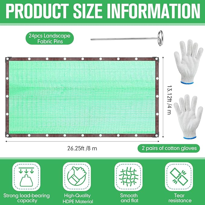 - Complete Harvesting Kit: this set includes 1 HDPE fruit harvesting net, ground pegs, and 2 pairs of cotton gloves; Agricultural collection netting measures approximately 26.25 x 13.12 ft/ 8 x 4 m; The package contains everything needed for efficient fruit collection, no additional purchases required