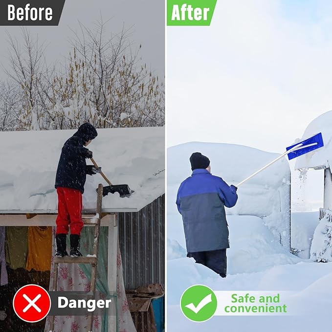 - Effortless Assembly Use: the snow roof rake package includes 1 handle pole and 4 extending poles, allowing for easily adjusting length depending on your height or the roof area targeted; The design offers simplicity and functionality, making the roof snow removal task less strenuous