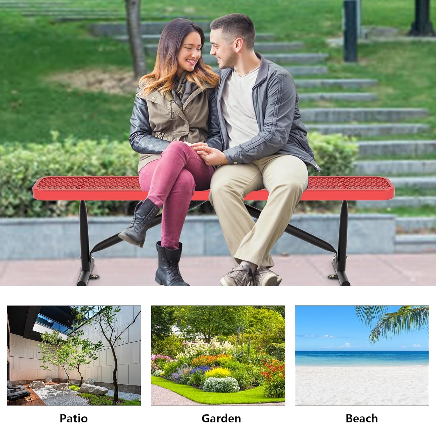6 Feet Heavy Duty Metal Park Bench for Outside, Outdoor Bench with Portable Frame, Commercial Benches for Shopping Mall, Store, Park, Patio, Deck, Red