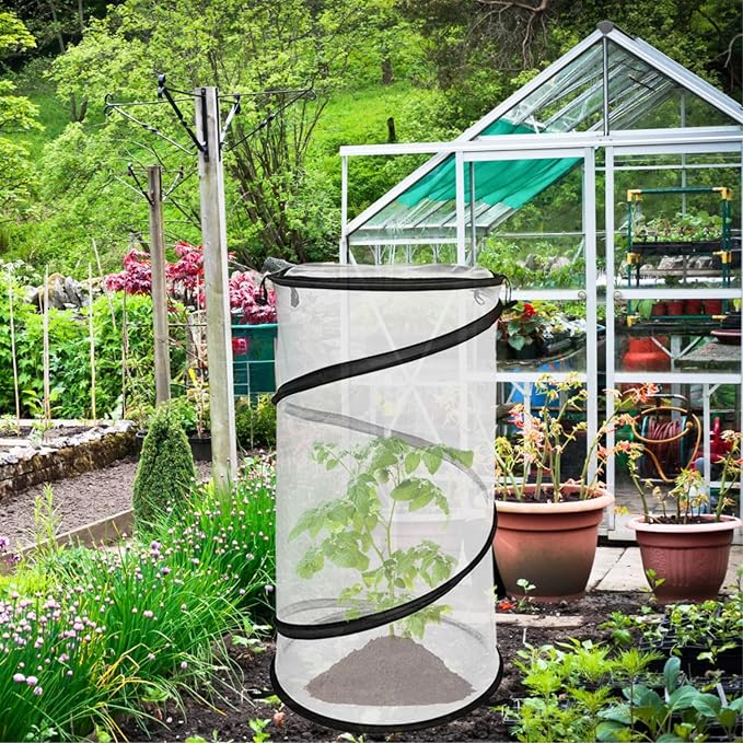 - All-Round Plant Protection: 4pack pop up net cover with dia 12"D X 24"H effectively safeguard your precious plants from birds, insects, rabbits, deer, and other curious animals. The fine mesh barrier creates a secure enclosure while allowing ample sunlight, air, and moisture to penetrate, ensuring your plants thrive in a healthy microclimate without any hindrance