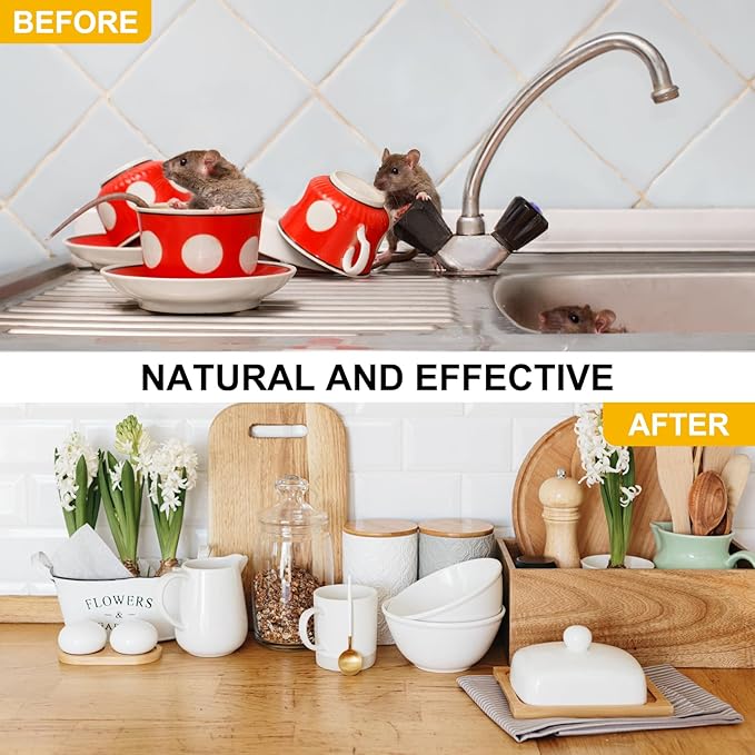 - Powerful and effctive: Our rodent repellent provides a strong, non-toxic scent that quickly drives rodents off your property and prevents them from chewing on electrical wires and nesting in your house.