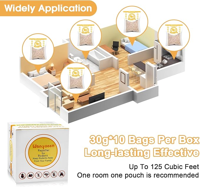 - Applicable to Rodents: Mice repeller for house are specially designed for rodents. Natural mouse repeller pouches are mainly used to repel rats and protect your property from being eaten by mice. In addition, this essential oil can also let you say goodbye to cockroaches, spiders and other pests.