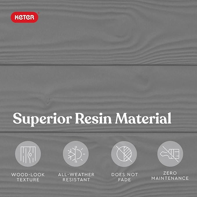 - ALL-WEATHER-RESISTANT: The all-weather-resistant materials make this low-maintenance patio storage easy to use and enjoy for years to come. Unlike real wood, the thick exterior resin prevents rusting, peeling, and denting.