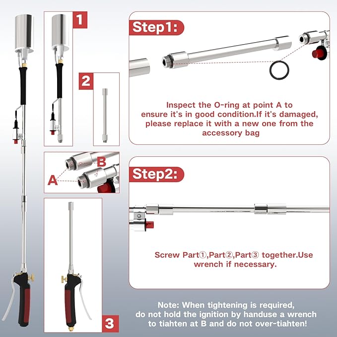 - 【Package List 】Propane Torch Weed Burner Kit: 1*Propane Weed Torch+1*10ft Stainless steel braided propane hose+2*Replacement Rubber Ring+1*Roll Sealing Tape+1*Wrench. If you are not satisfied with our product and any questions, we will contact you as soon as possible to provide you with a satisfactory solution.