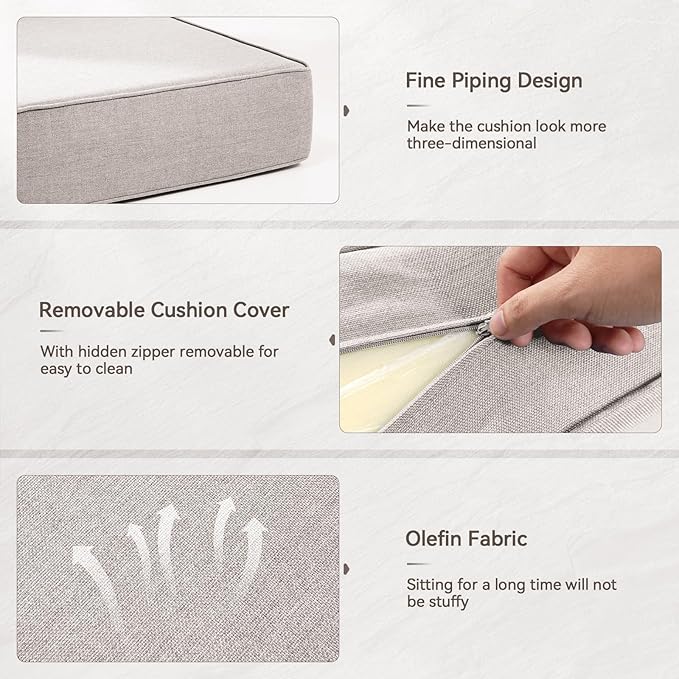 - Easy Maintenance & Removable Covers: These patio furniture cushions feature removable, machine-washable covers with invisible zippers and piped edges for a clean, tailored look. Whether you're replacing outdoor sofa cushions or need back patio furniture cushion updates, cleaning is effortless—just unzip, wash, and go