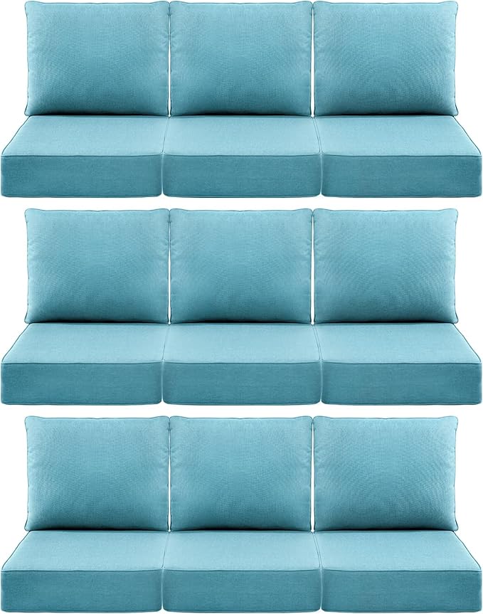 Luxury 6" Outdoor Cushions for Patio Furniture, 24x24x6 Thick Seat Cushion Set of 9, Fade Resistant Couch Chair Replacement Cushions High Density Deep Wicker Chair Cushion w/Removable Cover, Teal