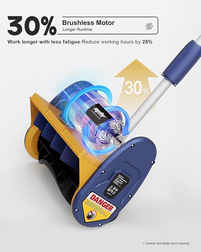 - High Efficient Brushless Motor: Equipped with a powerful brushless motor delivering up to 2,400 RPM, the Mellif snow blower offers longer runtime, higher durability, and 30% more working efficiency compared to brushed models