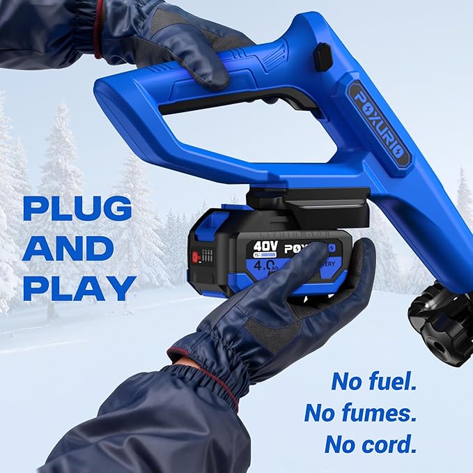 - EXCEPTIONAL QUALITY & WINTER RELIABILITY - POXURIO is dedicated to delivering superior products, exemplified by our cordless snow shovel with battery and charger. Designed for harsh winter conditions, it has been rigorously, including performance, stress, drop, and motor idling tests—to guarantee durability. Ideal for home use or as a thoughtful holiday gift, the shovel symbolizes care for friends and family during the cold festive season. Choose POXURIO, Easier for your every task.