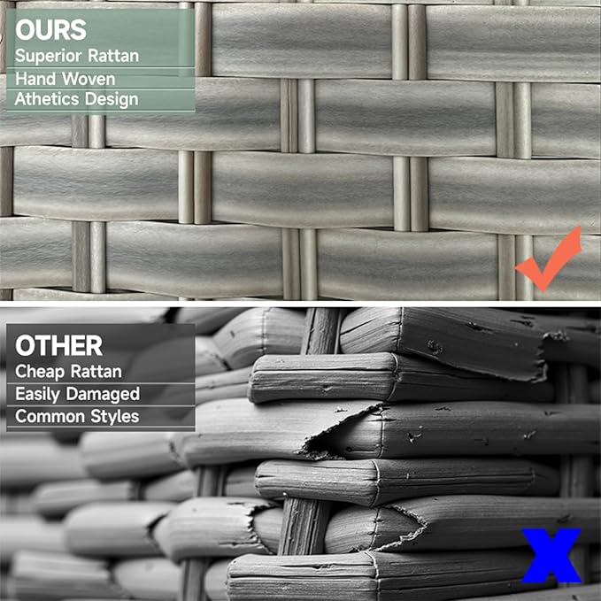 - Durable All-Weather Construction: Aukreolis patio set is hand-woven from elegant rattan in a stylish finish. Features rust-resistant galvanized steel frames for lasting durability. Adjustable, non-slip feet to ensure stability on any surface