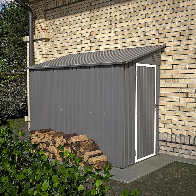 - VERSATILE OUTDOOR ORGANIZATION: YOPTO 4×8 Lean to Storage Shed offers generous room for tools, trash bins, ladders, bikes, or even pet supplies. This Heavy-Duty Lean to Storage Shed helps keep your yard, garage, or patio organized and clutter-free with its multifunctional design.