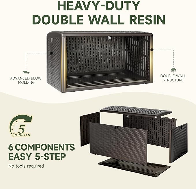 - VERSATILE STORAGE SOLUTION: Perfect for tidying up patios, pool areas, decks, and gardens. It securely stores outdoor cushions, gardening tools, seasonal items. The weatherproof design works great indoors and out.