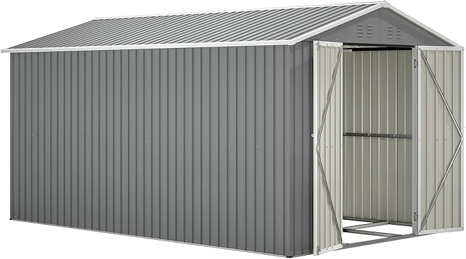 - SECURE & WEATHER-RESISTANT BUILD: Built with a galvanized metal body, aluminum frame, 2 air vents, and a sloped roof, YOPTO 8×12 Outdoor Storage Shed is engineered for durability. The lockable doors protect valuables, while the vents promote airflow and the roof prevents water buildup—perfect for year-round use