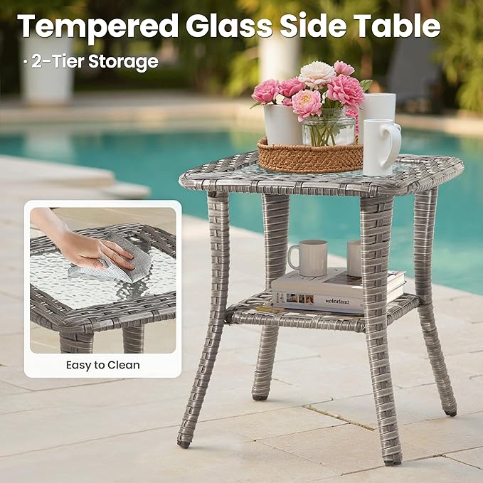 - All-Weather Rattan: Crafted from handwoven premium PE wicker with intricate handwoven detailing, this set is UV-resistant, waterproof, and built to withstand sun, rain, and wind. Its durable construction ensures long-lasting beauty without fading or cracking