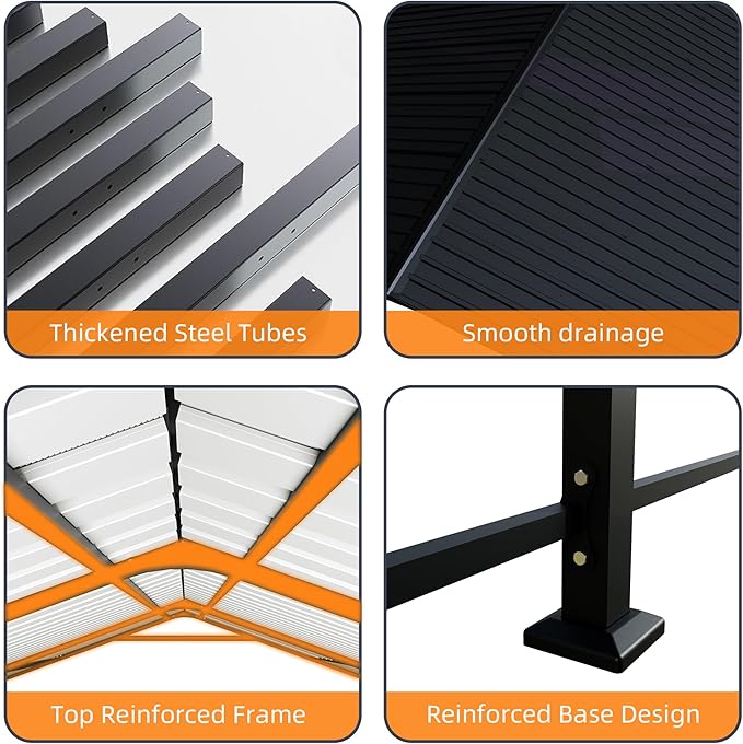 - 【Stable Base】: To ensure the stability of the heavy metal carport, we have strengthened the structural design of the base that enhances stability.(please note that the garage can only be used on horizontal surfaces).