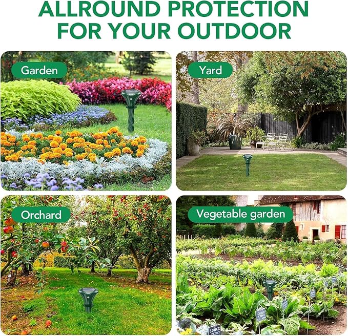 - [Wide coverage]: The upgraded mouse repeller has a protection range of up to 7000 feet. It can penetrate the soil and prevent them from entering the protected area, because moles are very sensitive to sound and vibration. Since burrowing rodents such as moles, voles, gophers, and groundhogs are common in the United States, this is an effective way to prevent them from damaging your outdoor areas, such as lawns, yards, and gardens