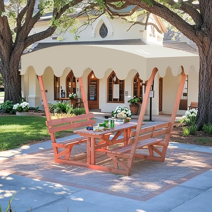 - 【Versatile for Any Outdoor Space】Perfect for patios, gardens, decks, parks, and beaches, this set adapts to every outdoor scenario. Its natural wood finish blends with any décor, and weather-resistant hardware stands up to sun, salt, and snow year-round