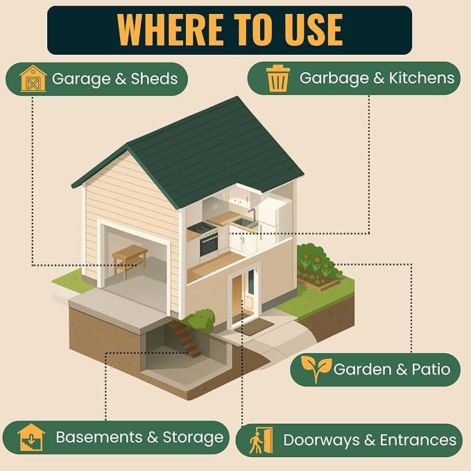 - ✅ MULTI-AREA USE (INDOOR & OUTDOOR): Treat entry points and hiding spots inside—baseboards, doorways, window frames, under sinks, cabinets, closets, bathrooms, laundry rooms, garages, basements—and outside on patios, porches, decks, around trash cans, exterior doors, foundations, and garden perimeters; spray, let dry, reapply as needed.