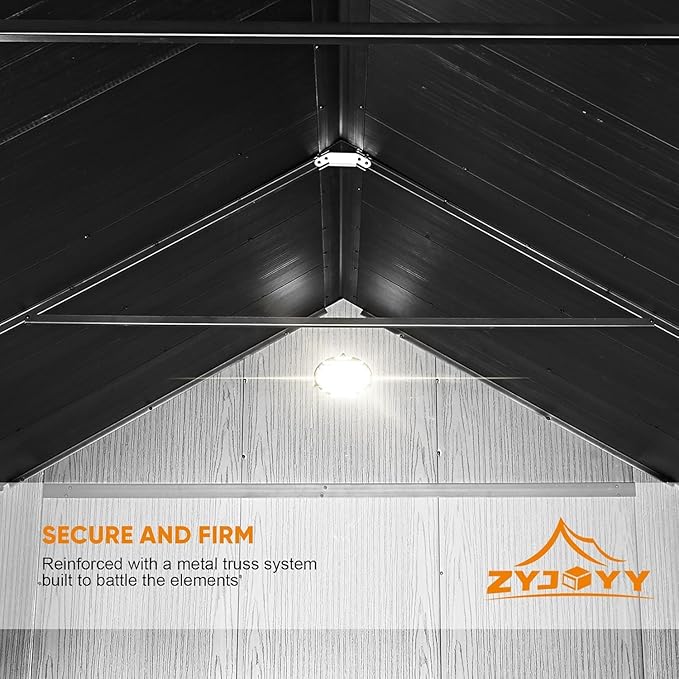- Robust Double-Layer Floor : The double-layer resin floor provides strong support for heavy machinery and resists abrasion. This ensures your tools and lawn equipment remain protected and the shed stays stable on level grounds.