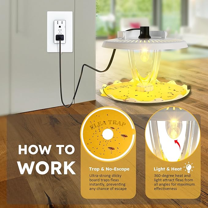 Flea Trap for Inside Your Home Indoor Electric Flea Light Catcher and Kiler for House 2 Pack with 8 Sticky Pads Refills and 4 Replacement Lightbulb
