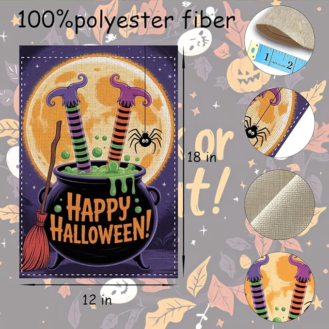 Fokongna Halloween Garden Flag, Happy Halloween Witch Feet Garden Flag, 12x18 Inch Burlap Vertical Double Sided Flags, for Home Yard Outside Decorations