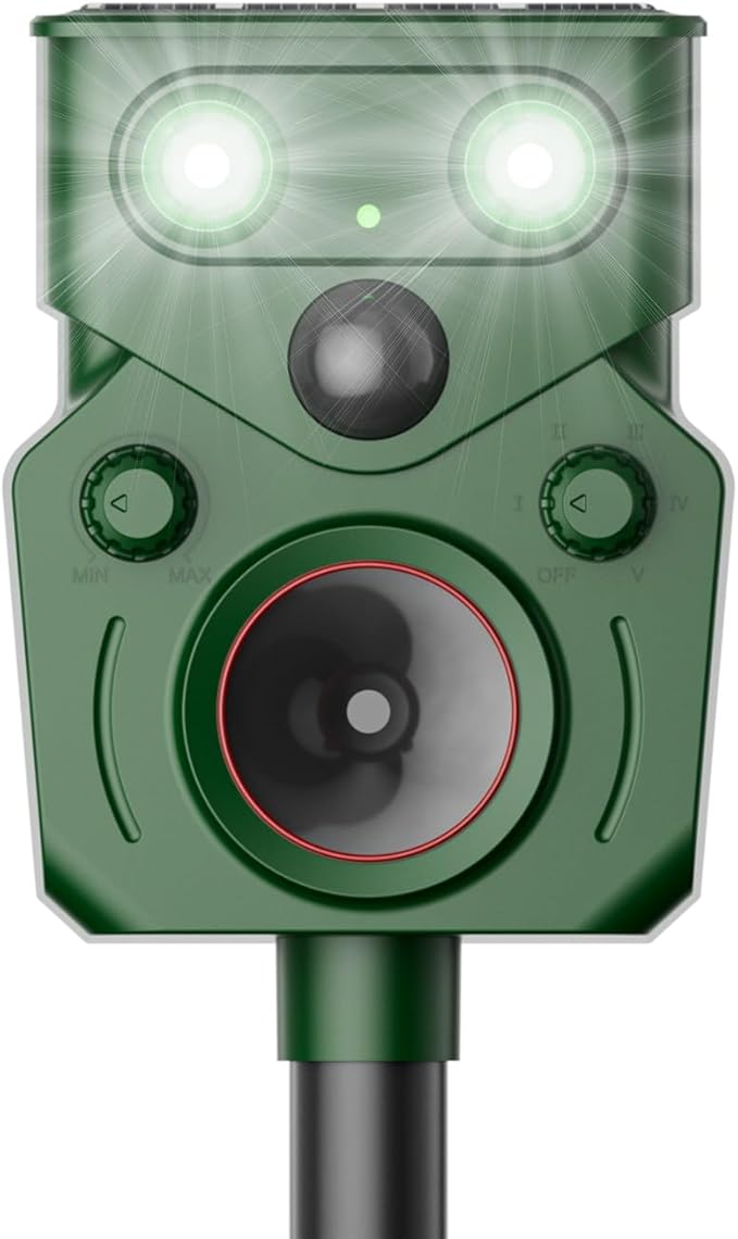 - Multi sensory animal deterrent: The solar animal repeller utilizes ultrasonic waves, flashing lights, and a PIR sensor. The PIR sensor detects animals near the protected area, triggering ultrasonic and visual stimuli to drive away squirrels, deer, rabbits, and more.