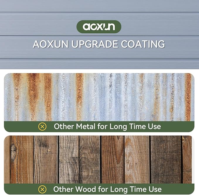 - Large Capacity Space & DIY: The outdoor shed is thoughtfully designed with ample capacity, offering generous space for storing your outdoor items or equipment, such as tools and bikes. This ensures that your backyard remains tidy and well-organized. In addition, you can purchase your own shelving to do DIY on the interior space