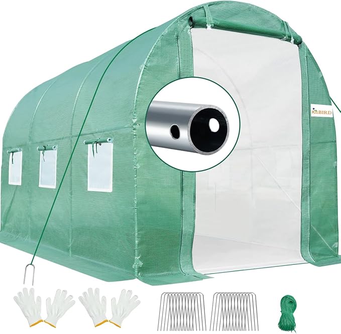 KING BIRD Premium 10x6.6x6.6FT Greenhouse for Outdoors, Large Walk-in Heavy Duty Galvanized Steel Frame, Mesh Door Screen Window Upgraded Zipper Tunnel Hoop for Garden Plant Winter, Green